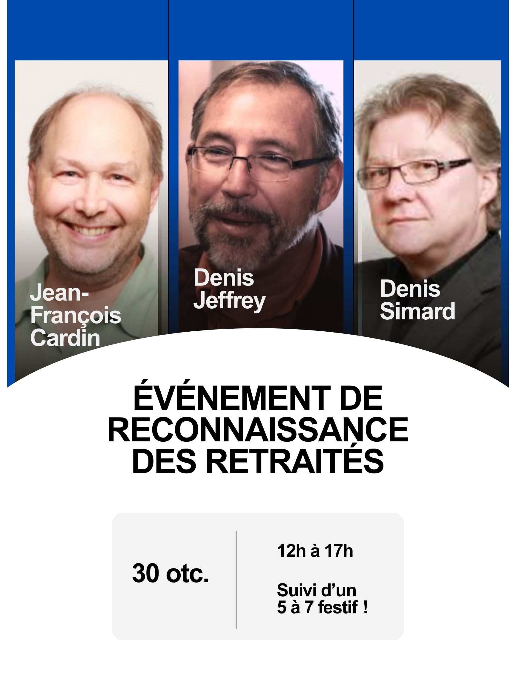 Durant cet événement, chacun réalisera une courte présentation de 20-30 minutes qui leur permettra de revenir sur les grandes contributions de leur carrière. Par la suite, des membres du CRIFPE-Laval feront une courte présentation pour témoigner de l’apport des collègues retraités. Enfin, l’événement sera suivi d’un 5 à 7 festif.